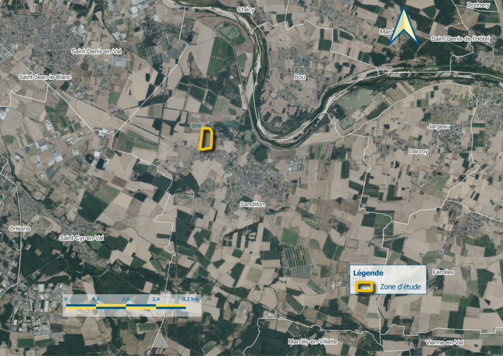 La zone d’étude, destinée à accueillir l’implantation des panneaux solaires, se situe sur la commune de Sandillon.